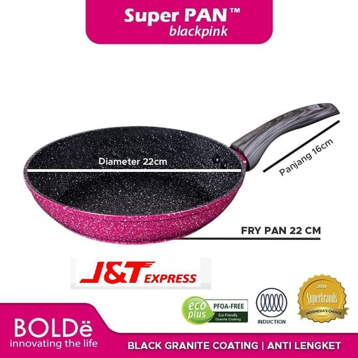 Peralatan masak Super PAN Fry PAN 22cm Black Pink Original BOLDeTebal panci 3mm ( 2x lipat dari tebal panci merk2 lainnya )* Tidak bergaransi.* Pecah tidak ditanggung dan tidak dapat dikembalikan.* Kerusakan fungsi akibat kelalaian pengguna tidak ditanggung oleh penjual.* Kerusakan fisik akibat pengiriman tidak ditanggung oleh penjual.* Sebelum dikirim barang pasti diperiksa* Tambahan kemasan Bubble Packing (GRATIS). Peralatan masak anti lengket berkualitas tinggi dengan coating bahan granit dengan ECO GREEN TechnologyTechnology yang ramah lingkungan dan tidak mengandung bahan kimia berbahaya.Coating warna beige ( krem )Induction bottom untuk jaminan pemanasan yang merata ke seluruh permukaan.Cocok untuk mengoreng telur serta masakan lainnya dengan higienis.Peralatan masak dengan interior & eksterior yang dilapisi oleh kinerja tinggi non-stick PTFE lapisan marmer membuat panci mudah untuk memasak dan dibersihkan. memasak dengan sedikit minyak untuk diet sehat. Tanpa asap, hijau & sehat, permukaan sangat tahan lama , efek anti-lengket yang hebat, ramah lingkungan dan tahan suhu tinggiSuper Pan dibuat dari tubuh aluminium die-casting serta dasar induksi yang memastikan kecepatan, distribusi panas yang merata, 3 mm bagian bawah menebal menyediakan distribusi panas yang stabil selama memasak, dan dengan cepat memanaskan sehingga menghemat waktu dan energi serta konduktif panasnya dapat memastikan pembuangan panas yang seragam dan mencegah hot spot.Dilengkapi dengan gagang berbahan silikon dengan sentuhan lembut yang tahan panas dengan desain grafis kayu yang indah. Tutup berbasis vertikal membuat kompor memasak Anda akan tetap bersih dan rapi serta tutup kaca dengan ventilasi uap membuat makanan mudah dilihat, tahan panas, dan anti- tergeli
