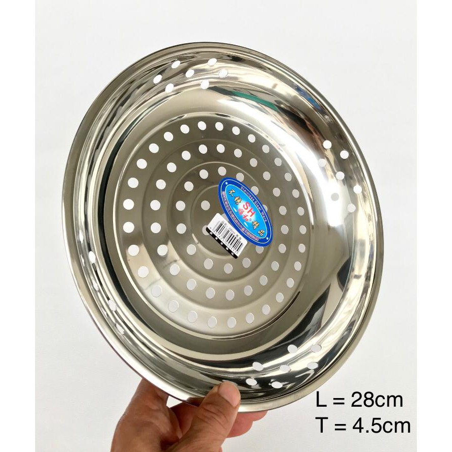 Saringan steamer multifungsi cocok di gunakan/pasang pada panci/sauce pot yang ukuran kecil dan besar untuk mengkukus makanan,kue kue dll..Selain itu dapat juga sebagai wadah saringan cuci buah dan sayuranUntuk dapat di pasangkan harus di samakan ukuran panci dengan steamer agar tidak ada celah yang lebih besarBahan stainless tahan karat non magnetic aman di gunakan untuk keperluan rumah tangga. Tersedia dalam beberapa ukuran yang berbeda sesuai pilihan 28CM/30CM/32CM/34CMUkuran :- Lebar : 28CM- Tinggi :