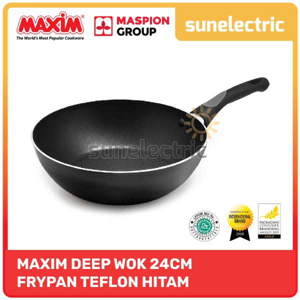 Lapisan anti lengket Teflon® adalah produk anti lengket terbaik, dengan berbagai varian performa sesuai dengan jaminan merk Teflon®. Lapisan bagian dalam alat masak ini terbuat dari anti lengket Teflon® sehingga membuatnya mampu mendistribusikan panas dengan baik dan merata. Produk ini juga mudah dibersihkan dengan harga yang ekonomis.Lebih Sehat untuk keluarga tercintaKeunggulan lainnya dari bahan Teflon® yaitu dapat digunakan untuk memasak dengan sedikit minyak, atau bahkan tanpa minyak sama sekali. Hal ini menjadikan masakan Anda lebih sehat sehingga kesehatan keluarga tercinta pun lebih terjaga.Bebas PFOAPerfluorooctanoic acid (PFOA) merupakan bahan kimia kontroversial yang dapat ditemukan pada proses produzis PTFE. Karena itu,Maxim hanya memproduksi alat masak yang bebas BPA yang sudah dilengkapi dengan sertifikasi oleh FDA dan lembaga yang mendukung kesehatan, sehingga aman digunakan.Mudah DibersihkanEksteriornya menggunakan silicon polyester, sehingga mudah dibersihkan. Desain handle menggunakan rivet, sehingga tidak mudah patah yang dilapisi soft touch sehingga tidak licin dan nyaman digenggam saat memasak (anti slip).Spesifikasi:• Diameter 24cm• Interior Teflon® Classic• Eksterior Polyester• Warna Black / Hitam• Dasar Silkscreen dan Spiral• Pegangan Bakelite• Aman untuk Oven: Tidak• Aman untuk Mesin Pencuci Piring: Ya.*Notes: Semua barang sudah di cek dan dipastikan bagus sebelum pengiriman. Untuk packingan yang lebih aman, silahkan order extra wrapping bubble / kardus agar barang tidak rusak di perjal