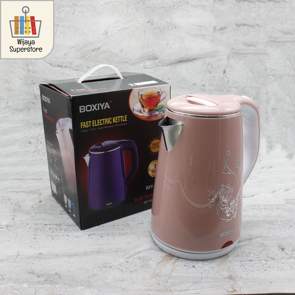 "Stainless SteelDengan material yang terbuat dari stainless steel yang berkualitas, ketel ini awet dan tidak mudah rusak, selain itu tahan panas.Tinggi Power pada 1500 watt bahwa wadah air memanaskan air dengan cepat, dibutuhkan waktu yang lebih singkat untuk merebus air jika ketel diisi dengan kapasitas maksimal 2 Liter.Kapasitas BesarKetel Elektrik ini berkapasitas 2 liter membuat Anda tidak perlu berkali-kali merebus air untuk menyeduh teh atau kopi, ataupun menyiapkan minuman ataupun makanan yang membutuhkan air panas.GOOD PRODUCT - GOOD QUALITY100% Premium Quality Spesifikasi:Kategori produk: Ketel listrikVolt : 220-240V 50/60HzNomor Model: BXY-1524Warna: Purple, Pink, BlueUkuran barang: 17 cm x 25.5 x 12.5Material: Stain