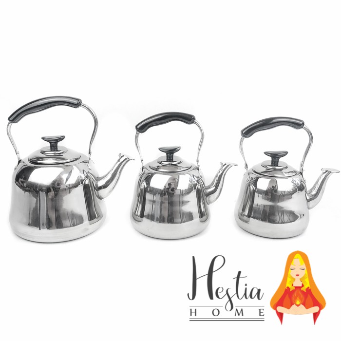 Teko ini sangat cocok digunakan untuk memanaskan air/minuman/cairan lainnya, dan dengan bentuknya yang manis dapat juga digunakan untuk menyajikan minuman/teh.Spesifikasi:--Teko 1 Liter--Diameter atas: 11 cmDiameter bawah: 14 cmPanjang: 18 cmTinggi: 11 cmTinggi keseluruhan: 21 cm--Teko 2 Liter--Diameter atas: 12,5 cmDiameter bawah: 16 cmPanjang: 19 cmTinggi: 12 cmTinggi keseluruhan: 23 cm--Teko 3 Liter--Diameter atas: 14 cmDiameter bawah: 18 cmPanjang: 23 cmTinggi: 14 cmTinggi keseluruhan: 25 cmKeunggulan:- Terbuat dari bahan Stainless Steel yang kuat dan tahan lama serta anti karat- Bahan tebal dan kuat, serta awet*** CATATAN UNTUK PEMBELI, mohon DIPERHATIKAN sebelum berbelanja ***• Barang yang kami kirim sudah dilapisi Bubble Wrap, namun jika ingin lebih safety lagi silakan tambahkan Extra Bubble Wrap di produk kami:• Harap tanya stock barang terlebih dahulu sebelum order agar menghindari terjadinya pembatalan produk.• Harap cantumkan warna/tipe/karakter yang tersedia di kolom catatan dan tolong berikan warna/tipe/karakter alternatif untuk mempercepat dan mempermudah pengiriman.• Pada saat yang dicantumkan warna/tipe/karakter kosong dan tidak mencantumkan warna/tipe/karakter alternatif maka kami kirim secara random sesuai warna/tipe/karakter yang tersedia.• Sebelum di kirim kami cek terlebih dahulu. Kami tidak menjual barang bekas atau barang dalam keadaan rusak. Kelalaian akibat pengiriman bukan tanggung jawab kami. Lebih baik produk di asuransikan supaya jika barang sampai dalam keadaan rusak, pembeli bisa klaim ke bagian ekspedisi.• HANYA akan menerima retur barang bila kelalaian dari pihak kami, yaitu bila kami salah kirim barang.• Membeli berarti setuju dengan Catatan dan Peraturan Toko HESTIA