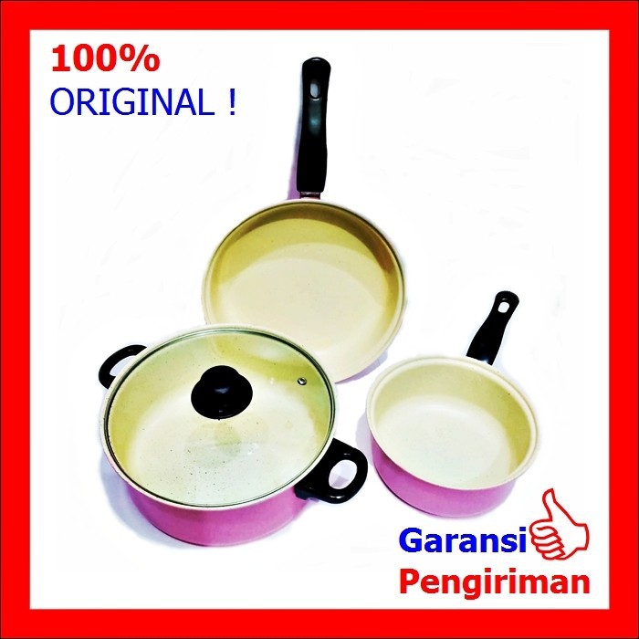 Selamat datang ..Semua produk di etalase kami adalah Ready stock dan siap dikirim Terima kasih Panci set enamel warna , Bisa untuk kompor induksi..Panci berbahan enamel Warna yg menarik dilihat dan mudah di bersihkan ,,Bisa untuk semua jenis kompor termasuk Kompor Induksi terdiri dari 3 panci dan 1 tutup kaca Panci Penggorengan Set Siap Pakai Bahan coating Enamel BerkualitasTerdiri dari Berbagai Panci dan Pernggorengan*24 cm Fry pan ( tutp kaca bisa memakai tutup yg sama dengan sauce pan )*24 cm Souce Pan plus tutup kaca*18 cm milk pan Panci yang pasti sangat memperindah dapur Bunda Panci dengan kualitas baik,Bisa untuk kompor in