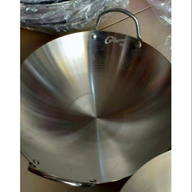 Calypso Kuali Wajan Stainless Steel 30cm- Bahan Stainless Steel- Cepat panas- Cocok untuk pemakaian rumah maupun restoran- Awet dan Tahan lama- Diameter 36cm / 38cmCalypso Kuali Wajan Penggorengan dengan bahan dasar Stainless Steel. Bahan wajan sangat kokoh sehingga awet dan tahan lama. Cocok untuk penggunaan di rumah, restoran maupun cafe.#wajanstainless #wajangoreng #wajanmasak #wajanberkua