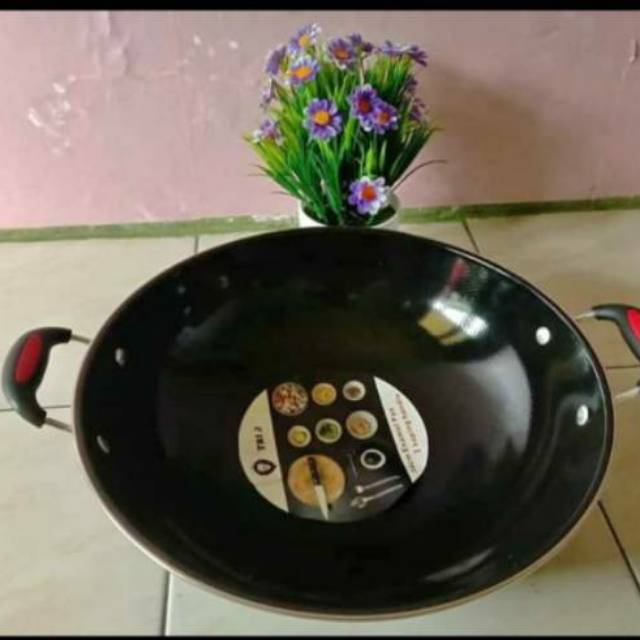 Wajan enamel berdiameter 34cm dan anti lengket kwalitas sangat superdi jamin barng bagus dan mantul bahan tebal dan anti lengketwajan gagang hitam plastik kokoh anti panas Wok Pan 34 cm Bahan Enamel * Non Stick Coating * For Healthy Cooking * Can be use for electric cooker * Use less oil * Even heating and rustproof * Easy to Clean Kelebihan peralatan rumah tangga berbahan dasar enamel - Perlu kamu ketahui bahwa perabotan rumah tangga berbahan dasar enamel lebih tahan lama dan lebih kuat. Sehingga kamu tak perlu sering sering membeli penggorengan baru tentunya. - Selain itu perabotan berbahan dasar enamel juga sangat mudah dibersihkan. Sesaat setelah kamu memasak semur, sop ataupun gorengan, kamu hanya perlu mengelapnya dengan spon ataupun busa, praktis dan simpel kan! - Anti gores. - Peralatan berbahan dasar enamel juga bisa dianggap sebagai barang mewah karena presentasinya yang elegan. Selain itu karena tahan lama dan juga terlihat mewah, - Peralatan berbahan dasar enamel juga nontoxic alias tidak beracun sama sekaliSELAIN VARIASI BONUS DAN GARANSI,, JIKA ADA KERUSAKAN TIDAK BISA KLAIM KERUSAKAN!! JADII SANGAT DIANJURKAN PILIH VARIASI BONUS DAN GARANSI!!Sebelum barang Dikirimkami sudah cek kualitas produkjika ada ketidaknyamanan atau kendala dalam pelayanan dimohon chat kami terlebih dahulu sebelum MEMBERIKAN NILAI!! TERIMAKASIH.,.,.,KLIK #pusatdapursurabaya untuk produk terbaik lai