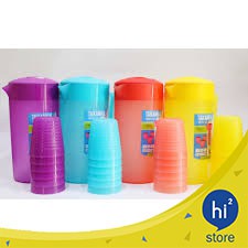 Sudah Termasuk Bubble wrap Material plastik foodgrade Terdiri dari 1 teko dan 6 gelas Warna yang cerah dan menarik Cocok untuk piknik, camping, atau menjamu teman-teman si kecil. Tutup teko dapat di buka-tutup dengan mudah. Spesifikasi : Teko: diameter 14cm, tinggi 24cm (2,1 liter)Gelas: diameter 7,5 cm, tinggi 8,5 cm x 6 Buah (200ml) Material : Plastik PP - BPA FREE Calista TAKANKALA merupakan Teko set dari Calista yang terdiri dari 1pc teko dan 6pcs gelas. Wadah ini terbuat dari plastik polypropylene yang bebas BPA, sehingga aman untuk Anda dan keluarga Anda. Ringan dan praktis, produk ini cocok digunakan untuk piknik, camping atau menjamu tamu di rumah.=========================apabila pembeli ingin melakukan claim, complain dsb, maka wajib melampirkan bukti berupa video unboxing ( pada saat paket diterima dari kurir dan di unboxing di depan kurir – tanpa edit )Apabila pembeli tidak menyertakan bukti tsb, maka mohon maaf kami tidak bisa dan tidak menerima complain dalam bentuk apapun.Note Untuk Barang Varian :Wajib meninggalkan varian / model / warna / ukuran / corak / jenis pengganti.namun apabila varian pengganti tersebut kebetulan tidak ada ,maka kami akan tetap kirim random, beserta bonus.TERIMA KASIH & HAPPY SHOPPING :)Untuk menghindari kerusakan barang pada proses pengiriman, silahkan atc Bubble wrap#CALISTA #TEKOTAKA